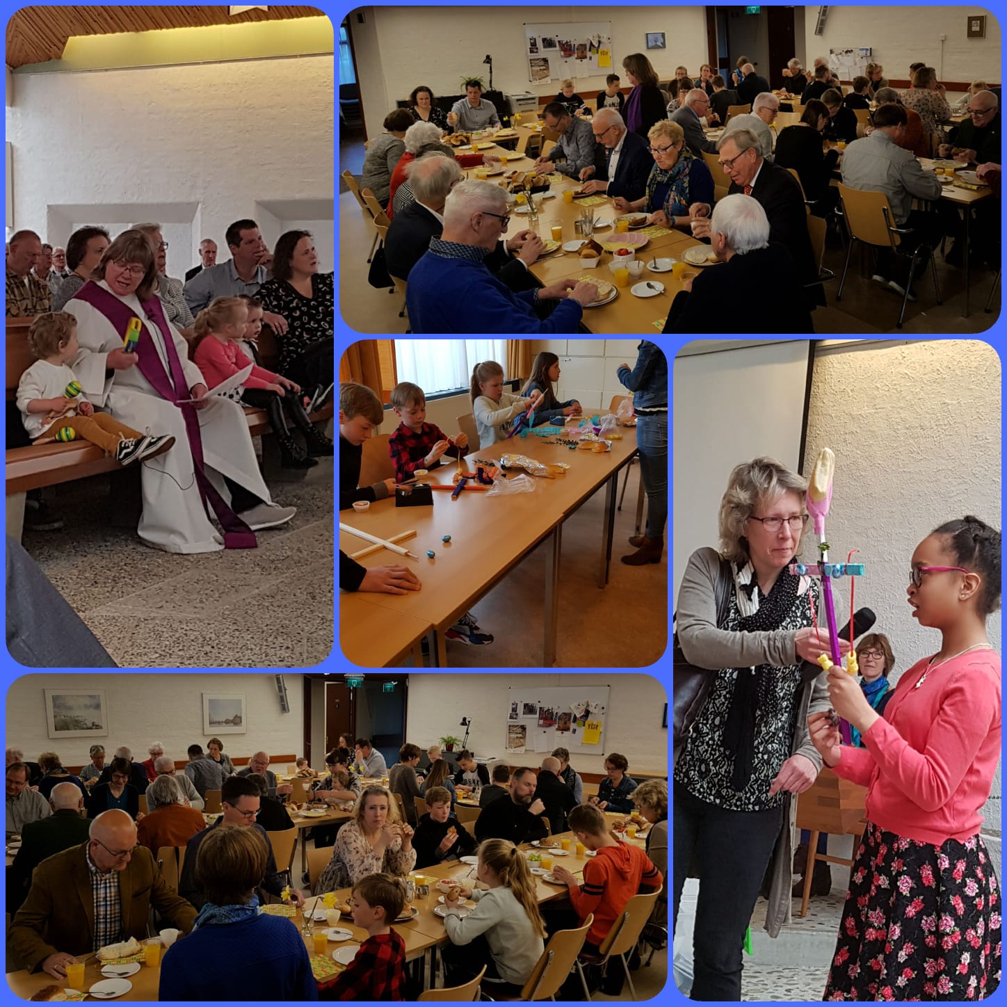 Op palmzondag werd de dienst begonnen met een feestelijk ontbijt voor jong en