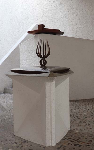 Het gebouw en de inrichting zijn rijk aan symboliek. De plastiek van